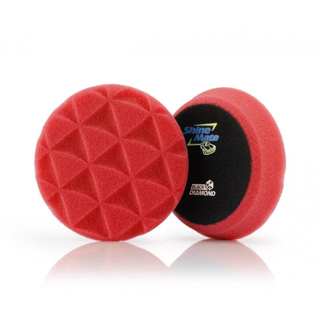 The ShineMate Black Diamond Red Foam Pad has very light cleaning action for removal of ultra-fine swirl marks, car wash scratches, and hazing, leaving a swirl-free gloss finish when used in conjunction with finishing polishes.