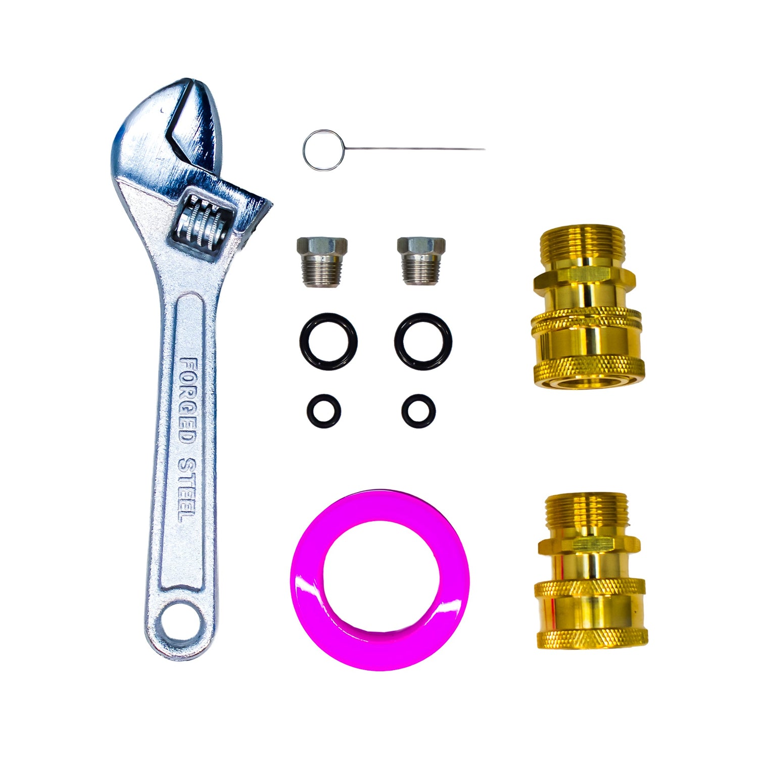 Includes male 3/8" (14.8mm) quick-release coupling to affix to a standard quick-release hose