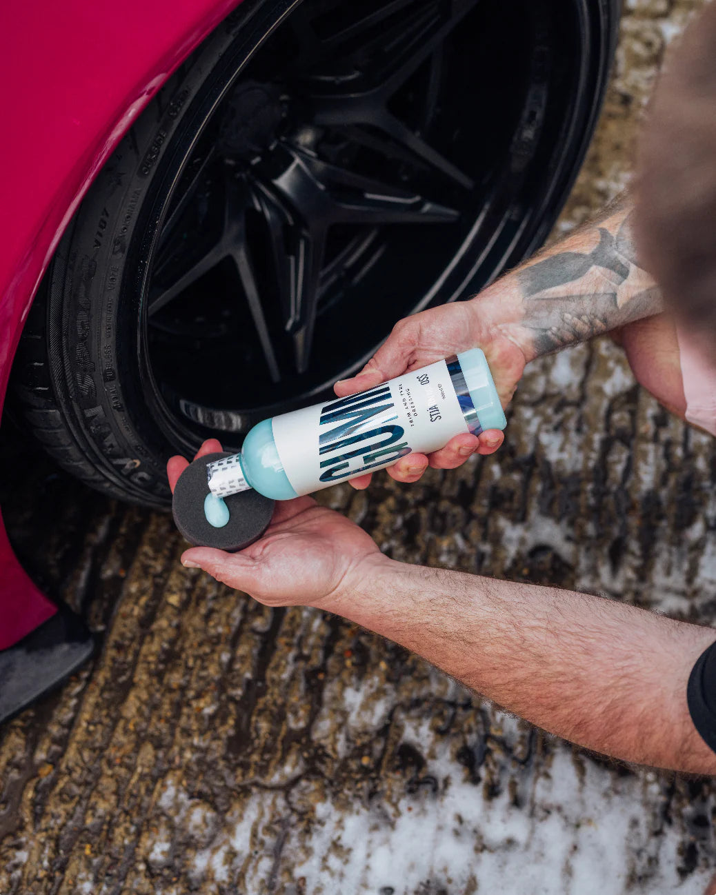 Gummi is the perfect consistency for applying to tyres and trim – a light blue cream that glides onto rubber and plastic surfaces quickly and easily. You’ll never use too much or feel it dripping down the paintwork you’ve just polished.