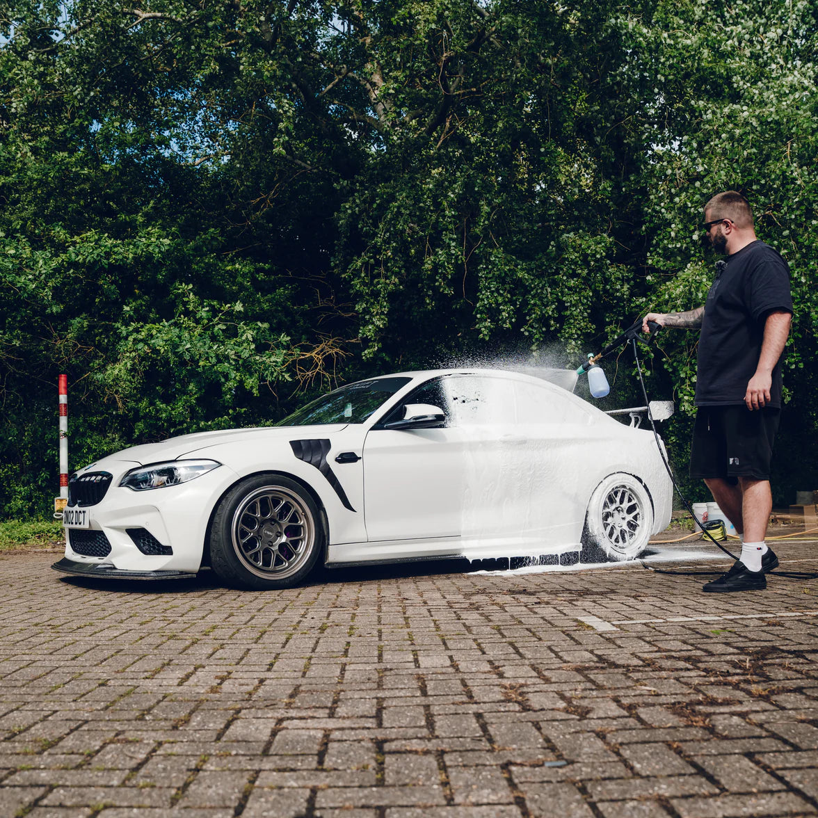 Apply it via a professional snow foam cannon with a pressure washer capable of 130bar or more for best results. Cover your car from the bottom upwards to increase the dwell time of the product on those dirty lower areas. A little slip to the snow foam will help carry most of the dirt away. To use, simply add approximately 50ml to your snow foam cannon's 1L dosing bottle and top up with water. Then see the incredible cleaning effects of that thick, luxuriant foam. You probably won't use all the mixture on a single car. We reckon a litre of concentrate is good for 20-40 pre-washes.
